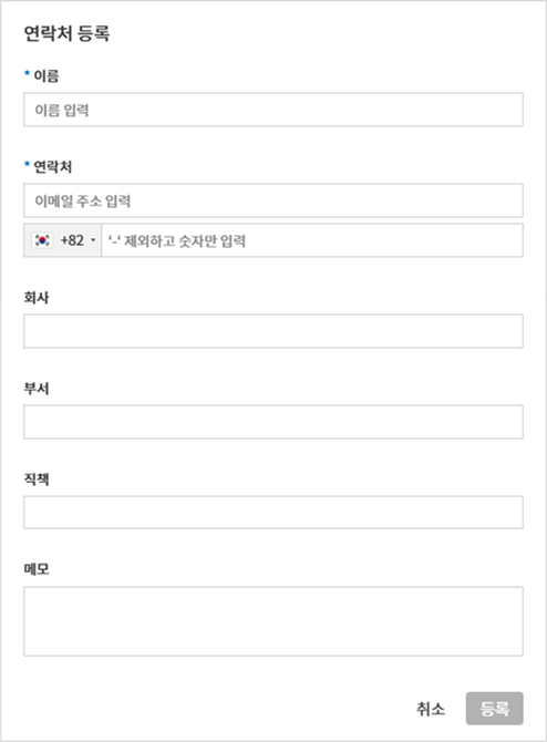 공용 연락처 관리: 회사 전체 멤버와 공유할 외부 수신자의 연락처를 등록 및 관리할 수 있습니다.