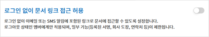 이폼사인 멤버가 문서 요청을 받은 경우 해당 문서 링크를 클릭 시 로그인 없이 문서를 열람하고 처리할 수 있도록 설정할 수 있습니다.